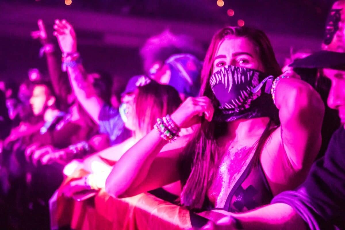 • Wear high quality earplugs to protect your hearing, as the bass frequencies and overall volume levels are extremely high inside the venue.